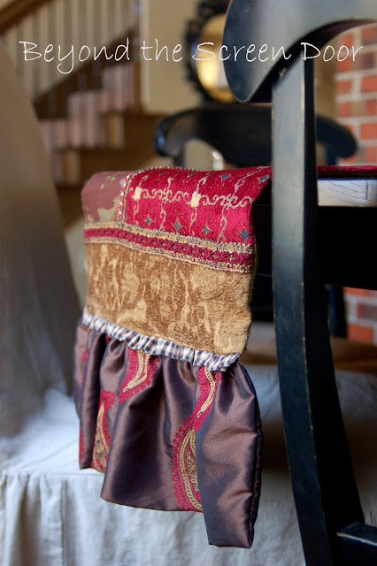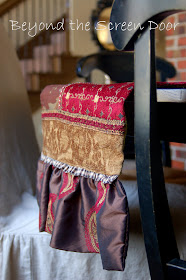 5. Oh I love this idea. I love mixing the fabrics...I could have added a ruffle to my chair...lol. You are right, we have to make it our own. I have to be just a tad different:) Pretty fabrics. You are so talented with fabrics and mixing, and then creating a nice work of art.
