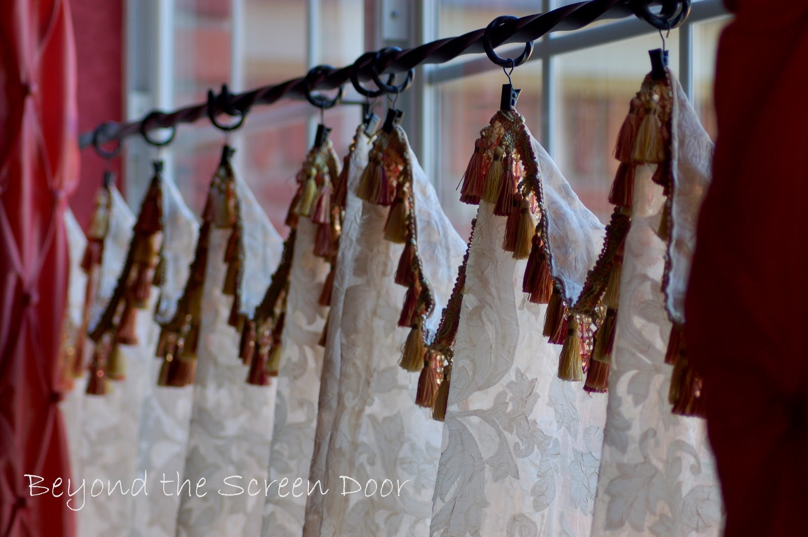 very clever solution. those drapes are beautiful. i love pink, but i think my husband would have something to say about me having that much fun in one room! popping in from tatertos and jello!