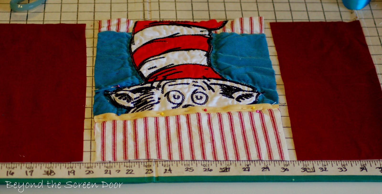 A few days ago (or was it weeks?) I promised you the details for the Cat in the Hat accent pillow from Judy's guest room. Well, here you go!
