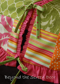3. Love the fabrics! The combination of pinks, oranges, and greens really give a nice pop of color. It's a favorite color combination of mine. We both have good taste!