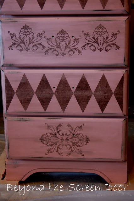 ReplyDeleteWhat a fabulous treatment! You did a wonderful job! I love the harlequin pattern mixed between each drawer! Nice work on the glaze, as well.