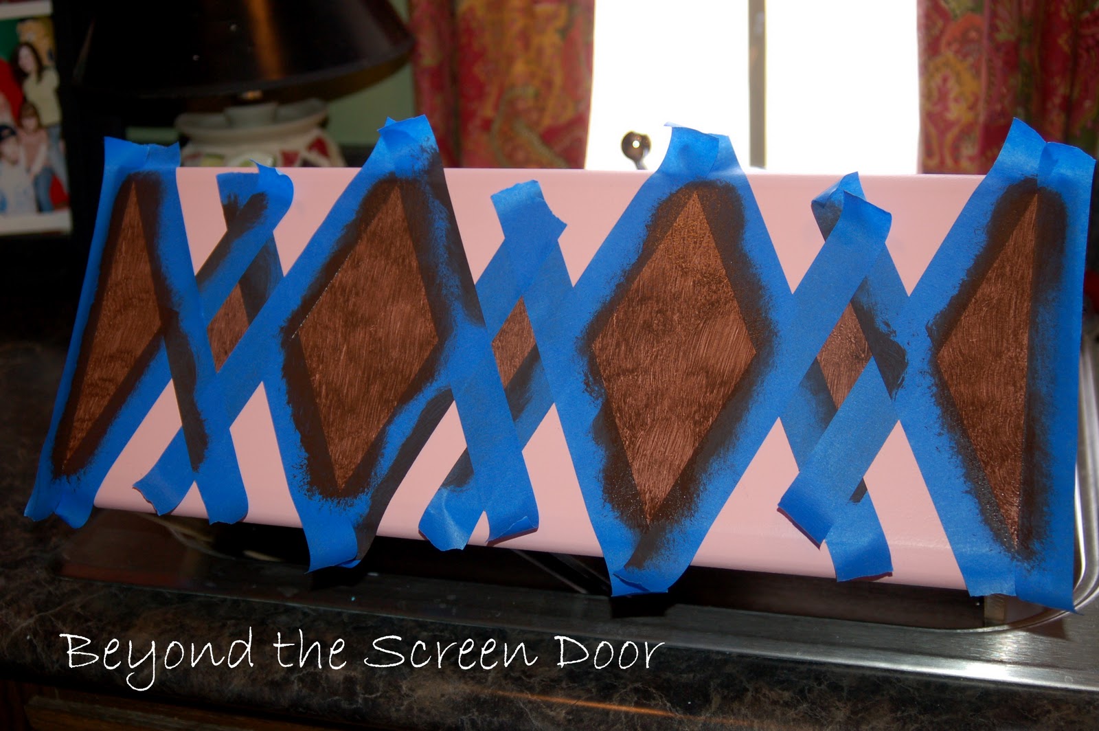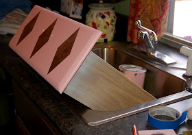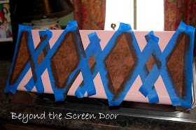To create the harlequin, I divided the drawer and then taped off the pattern. Yes, I know, there are stencils for this kind of thing but when I'm in the "I'm doing it NOW!" mode, I work with what I've got". In this case...I winged it!