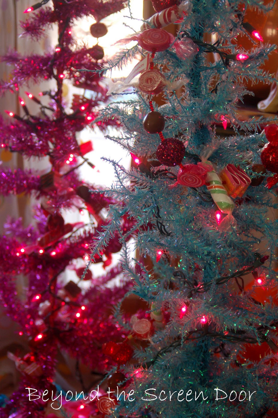 You'll find turquoise & magenta trees adorned with bright pink lights...