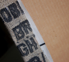 I recovered the board with the coffee sack by simply stapling the edges to the cardboard.