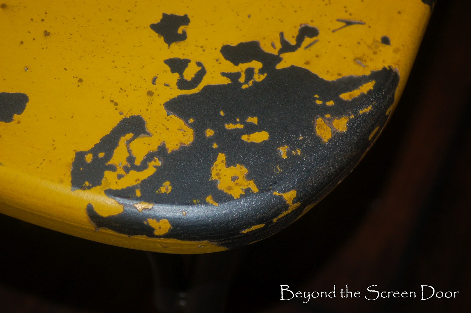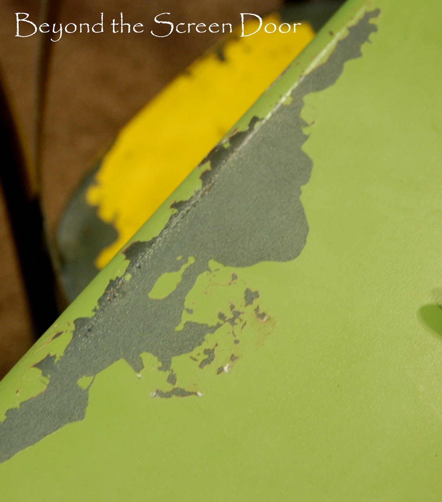 The two chairs used in the kitchen have the most amazing paint finish. The reason I consider this amazing is because I was totally fooled into thinking these were distressed metal chairs! They're not!