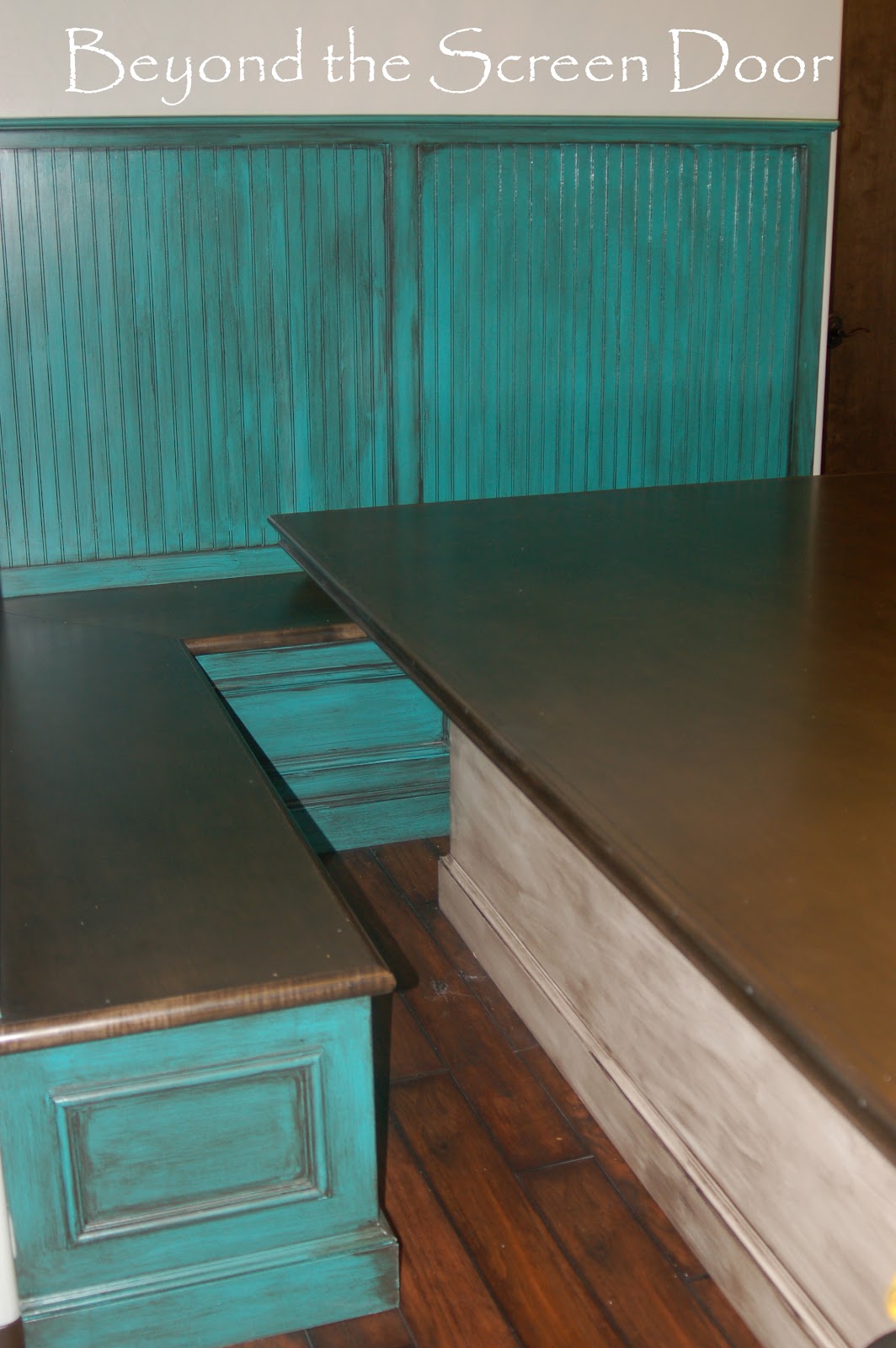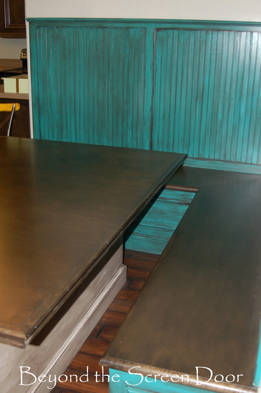 ReplyDeleteBeautiful banquette and table! Love the colors and the painted bead board. Gorgeous space!