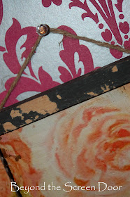 The bird art is hung with simple jute twine. To add a bit of sparkle I glued a rhinestone to each nail head.
