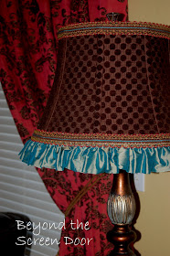ReplyDeleteLove both of these! I need the turquoise for my bedroom. :-) You know, when I'm looking at lamps and shades, my mind is always in gear as to how I can change them. I love putting a personal touch on them! I haven't tried making a shade from "scratch" like you did ~ it's just gorgeous, as all your creations are.