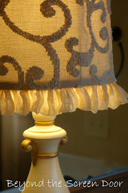 I love the fabric you used to remake your shade and with the ruffle...it is sooo pretty!