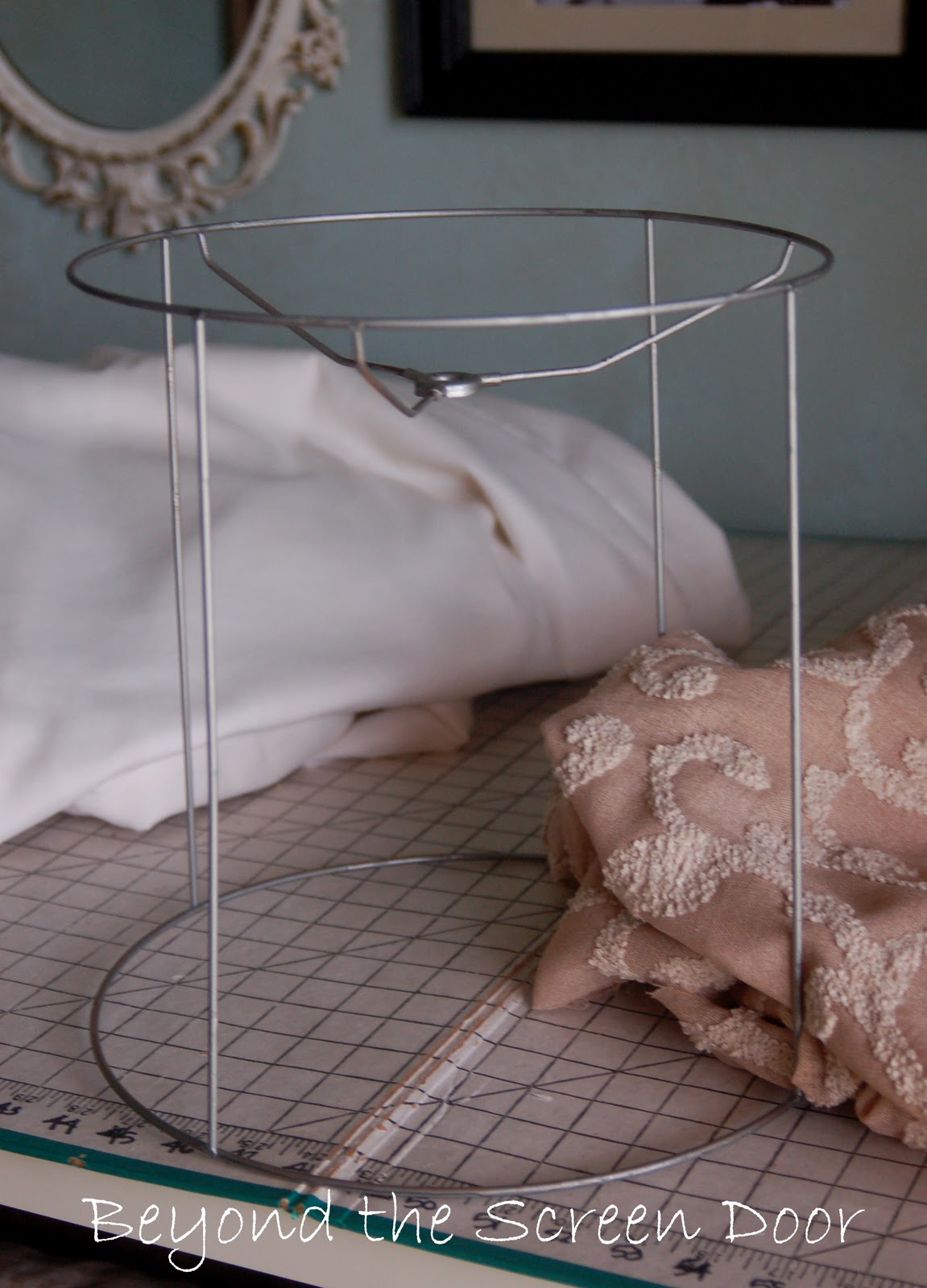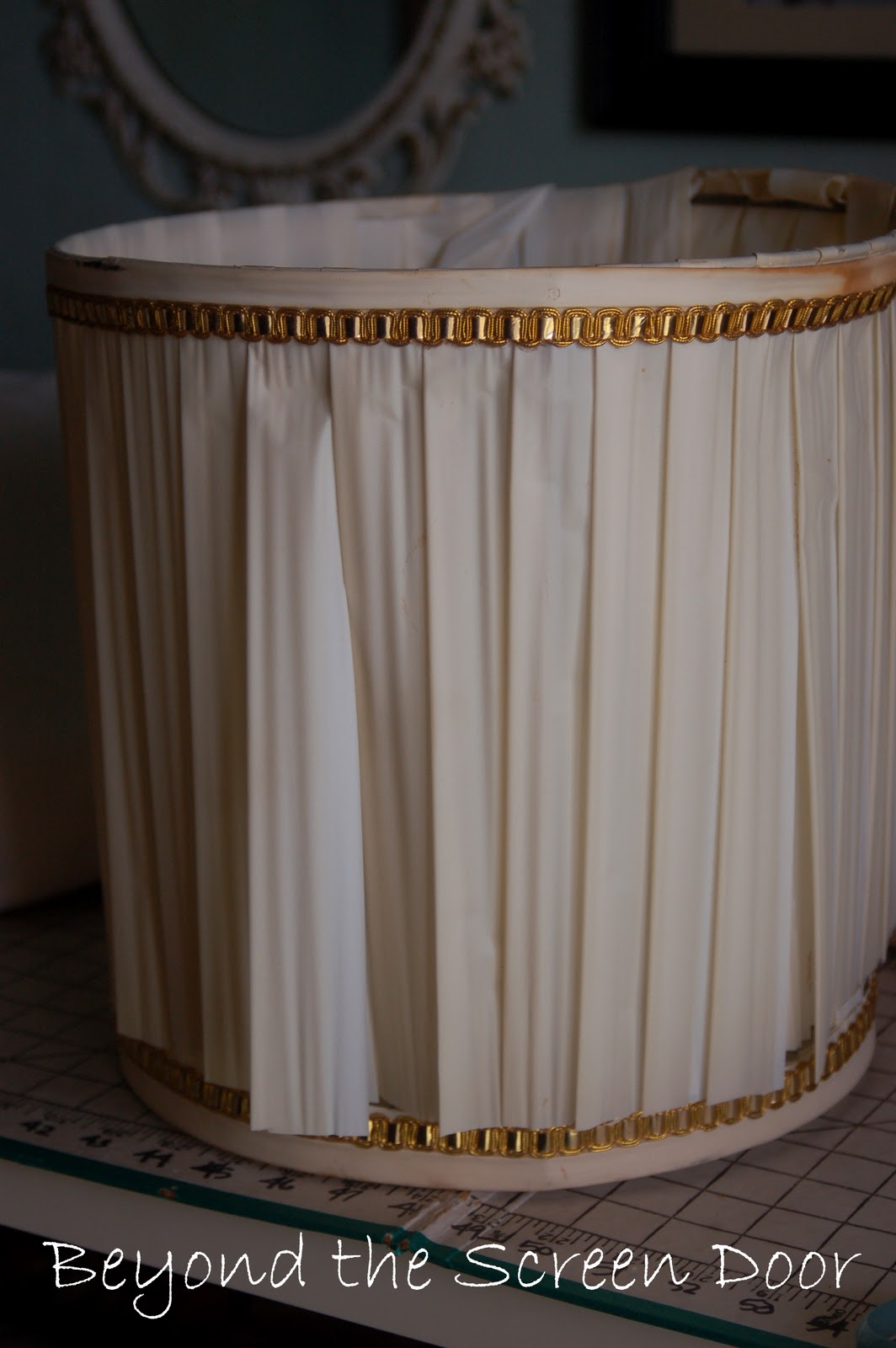 This next lampshade project involves another thrift store lamp that I toted all the way home from North Carolina this past summer. I liked the lamp base, it was in good condition, the shade was another story!
