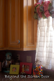 3. That is so fun, Sonya! I love these colors she's used. I can see a bit of her wall color so these colors probably work really well in her kitchen, along with the silk stripe of the curtains. I haven't seen the ruffled fabric before, but I love it!
