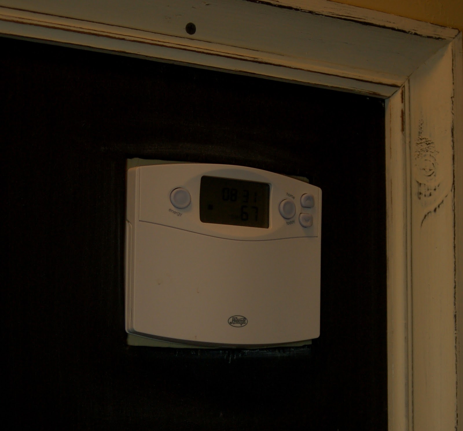 The biggest hindrance to my plan was the on-so-inconveniently placed thermostat. This dilemma threw me for years. I finally figured I'd just cut around it!