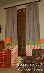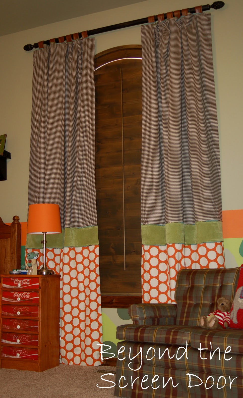The lace-up style of this valance (courtesy of my sister, Sheri) looks adorable adapted as a sports theme. Football, baseball or even soccer.